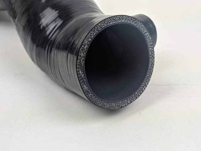 This upgraded hose with 5 ply installs after your Airbox and produces better turbo response and a bit of power on harder pulls.